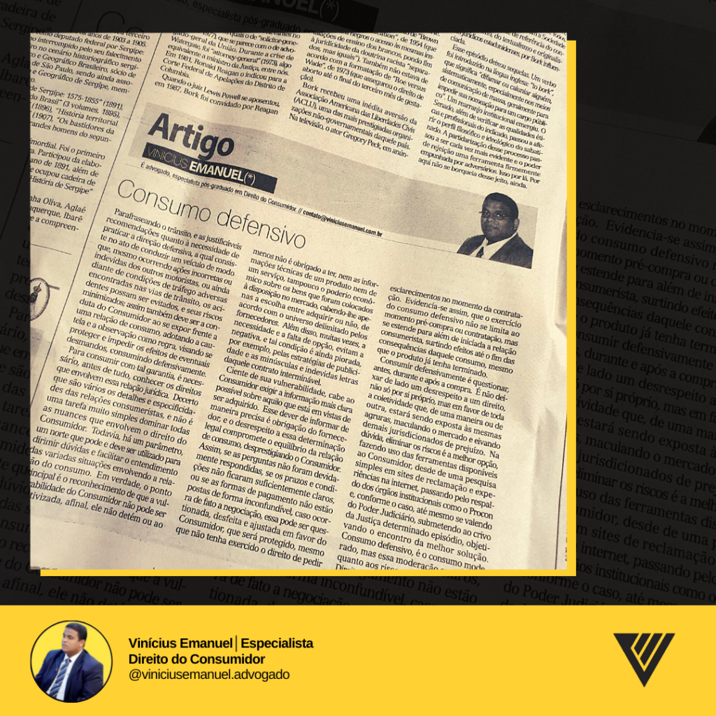 *é advogado, especialista pós-graduado em Direito do Consumidor. contato@viniciusemanuel.com.br